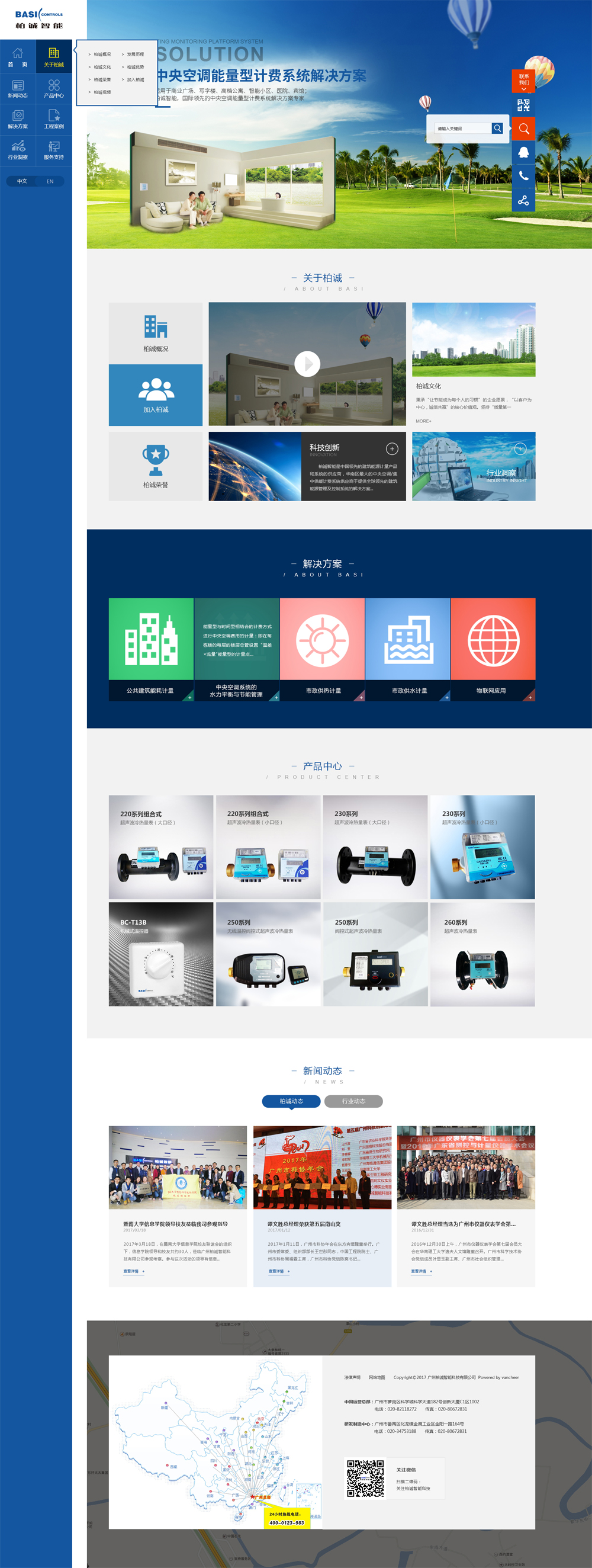 廣州柏誠智能科技有限公司于1998年成立,產(chǎn)品有冷熱量表等建筑節(jié)能計量儀表、建筑能源計量監(jiān)控系統(tǒng)和云能源平臺管理系統(tǒng)平臺等系統(tǒng)解決方案,是國內率先提供中央空調計量、供熱計量服務的,集研發(fā)、生產(chǎn)、銷售、服務于一體的高新技術企業(yè)、AAA信用企業(yè)。核心產(chǎn)品超聲波冷熱量表等多個研究成果也列入了火炬計劃項目、中國儀器儀表學會科技成果獎和產(chǎn)品獎、全國建設行業(yè)科技成果推廣項目、廣東省高新技術產(chǎn)品、廣州市科學技術進步獎等榮譽。